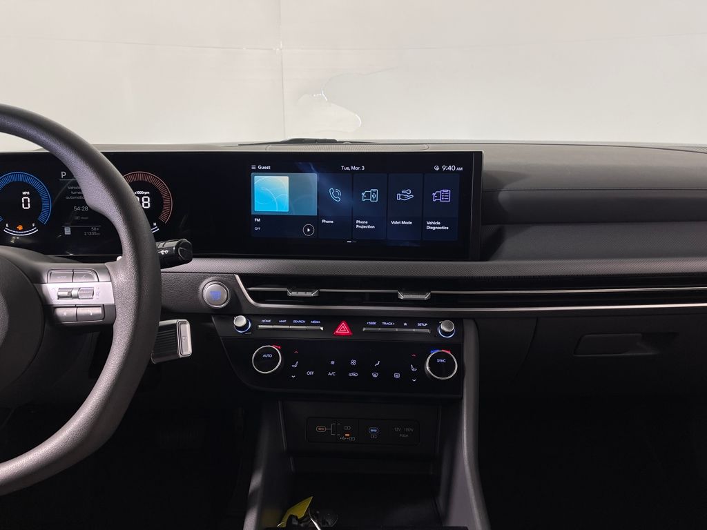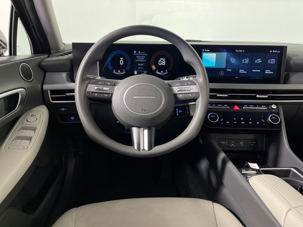 Option Group 01, Apple CarPlay & Android Auto, Automatic temperature control, Emergency communication system: Bluelink, Front dual zone A/C, Heated front seats, Power driver seat, Remote keyless entry, 17" x 7.0J Aluminum Alloy Wheels, 4-Wheel Disc Brakes, 6 Speakers, ABS brakes, Air Conditioning, Alloy wheels, AM/FM radio: SiriusXM, Auto High-beam Headlights, Brake assist, Bumpers: body-color, Delay-off headlights, Driver door bin, Driver vanity mirror, Dual front impact airbags, Dual front side impact airbags, Electronic Stability Control, Exterior Parking Camera Rear, Four wheel independent suspension, Front anti-roll bar, Front Bucket Seats, Front Center Armrest, Front reading lights, Fully automatic headlights, Heated door mirrors, Heated Front Bucket Seats, Illuminated entry, Knee airbag, Low tire pressure warning, Occupant sensing airbag, Outside temperature display, Overhead airbag, Overhead console, Panic alarm, Passenger door bin, Passenger vanity mirror, Power door mirrors, Power steering, Power windows, Premium Cloth Seating Surfaces, Radio data system, Radio: AM/FM/HD/SiriusXM, Rear anti-roll bar, Rear seat center armrest, Rear side impact airbag, Rear window defroster, Security system, Speed control, Speed-sensing steering, Speed-Sensitive Wipers, Split folding rear seat, Steering wheel mounted audio controls, Tachometer, Telescoping steering wheel, Tilt steering wheel, Traction control, Trip computer, and Variably intermittent wipers.